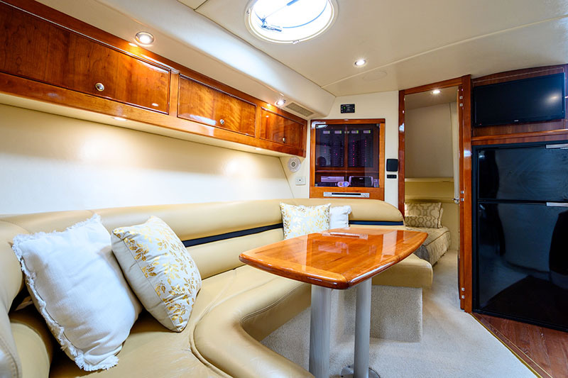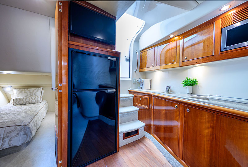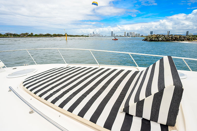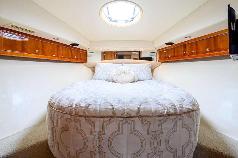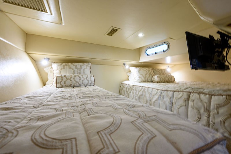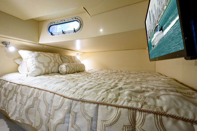Recent upgrades (2021 – 2025): New cockpit clears (froward) | New Rainman watermaker | New anchor and chain | New underwater lights | Port side oil cooler replaced | Custom drive sprinklers installed | Port and Starboard turbo replaced | New LED spotlight | New Galley fridge / freezer | Replaced genset heat exchanger | New carpet to forward saloon | Wifi added | 2 x New TV’s | Hull sandblasted | Replaced 12v water pump | Bimini and rear awning replaced | Garmin electronics and radar added | New navigation lights | Port and Stabord Stern Drives overhauled | Serviced Feb 2025 (Volvo)