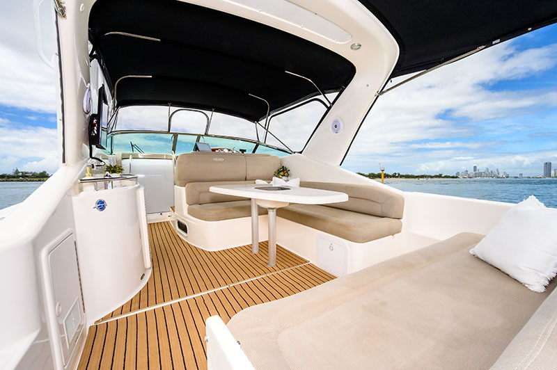 Meticulously maintained and presenting in exceptional condition, ‘Escapade’ offers a luxurious and versatile layout, perfect for entertaining and extended stays on the water. The expansive cockpit features generous seating and a wet bar creating the ultimate setting for social gatherings or relaxed coastal cruising. The teak-laid swim platform provides easy water access, enhancing your enjoyment of on-water activities.