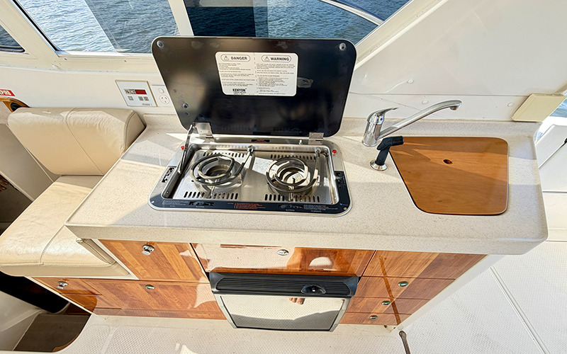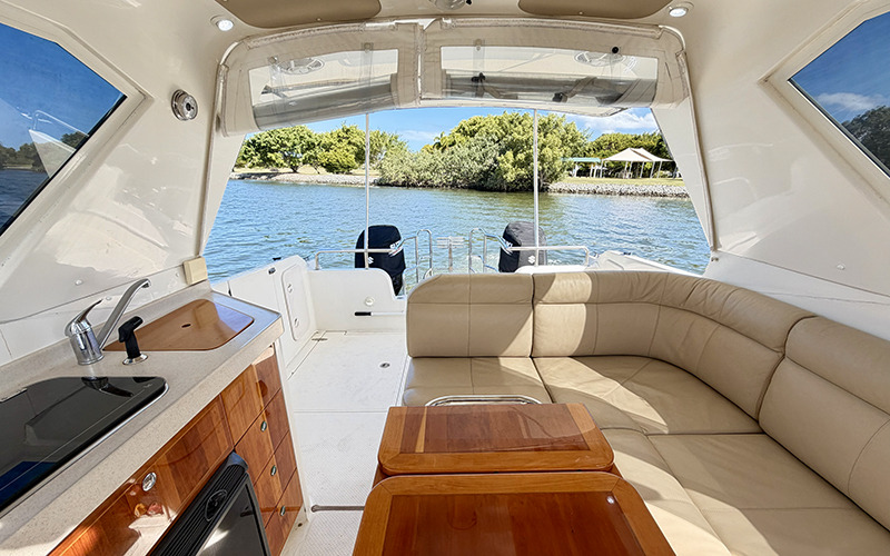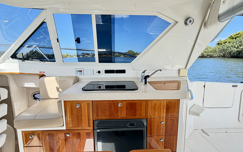 Onboard, “Gemini II” offers a well thought out cruising fit out, including a comfortable dinette and galley, a private head with shower, and accommodation suited to overnighting. This layout makes her an ideal platform for exploring Moreton Bay, quick coastal runs, or comfortable overnight stays on the reef, with the ability to anchor up and enjoy extended time on the water in comfort.