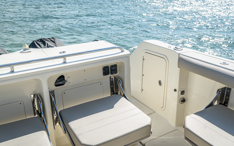 This particular example is extremely well set up and well known as a capable fish raiser. The cockpit is uncluttered and purpose-built, featuring electric reel outlets and Relax outriggers, making her equally suited to light tackle or offshore fishing. There is ample space for multiple anglers, with a layout that simply works.