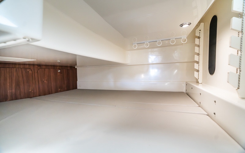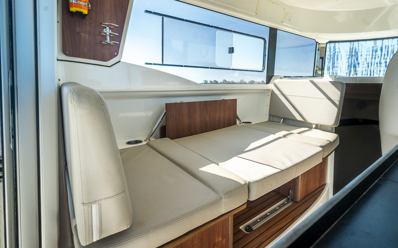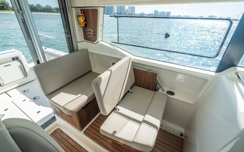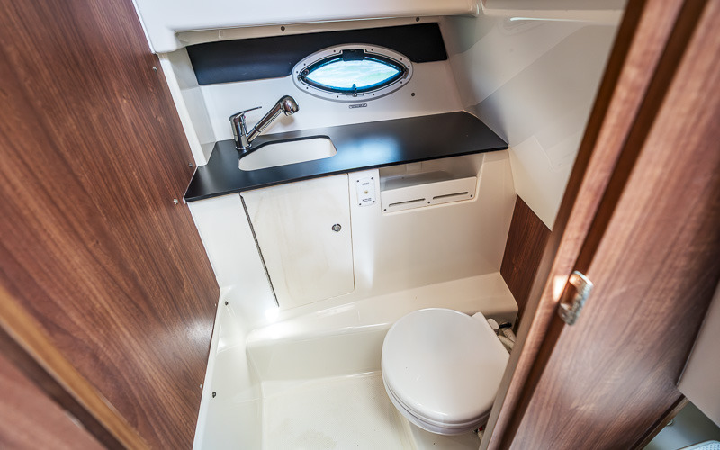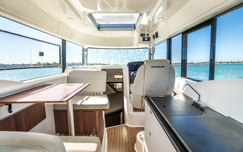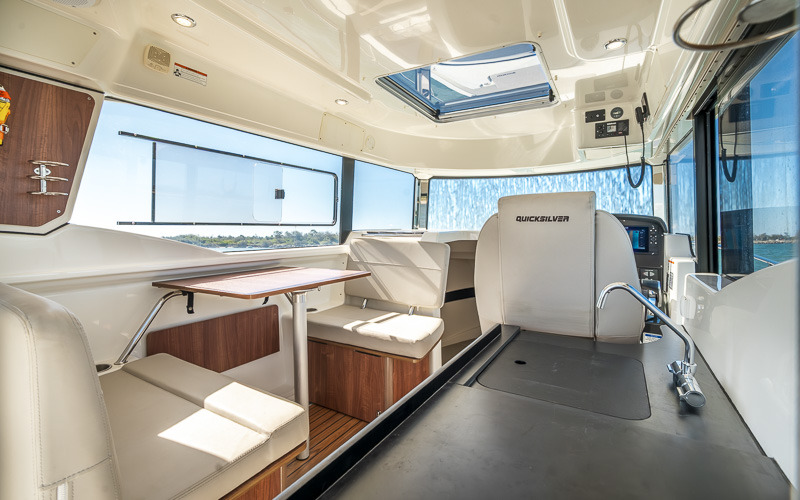 Inside, the enclosed wheelhouse provides excellent protection and visibility. The saloon is functional and comfortable, with a convertible dinette and a simple galley with sink and storage. Accommodation is well laid out for overnighting or weekends away.