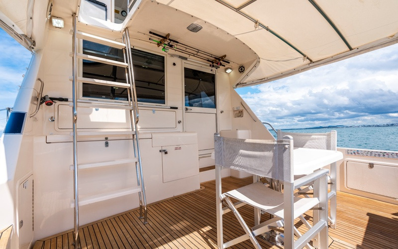 The enclosed and newly air conditioned flybridge is accessed via an internal staircase from the saloon and features a forward helm station with excellent visibility, plush guest seating and a rear door that opens to the flybridge deck. An additional aft helm station is fitted, which is ideal for docking, fishing or handling the vessel short handed.